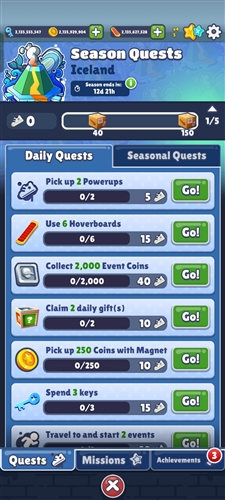 除了惊险刺激的跑酷动作和金币收集外,地铁跑酷还添加了有趣的任务系统,每天只需完成每日挑战就可获得十分丰厚的奖励,游戏中任务类型分为几大类,接下来跟随小编逐一了解吧。